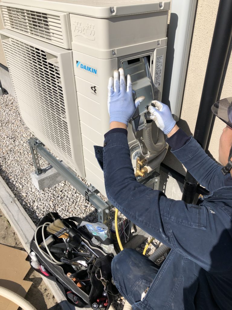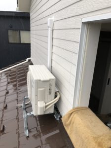 室外機施工途中の写真は、ダイキンエアコン「うるるとさらら」です。