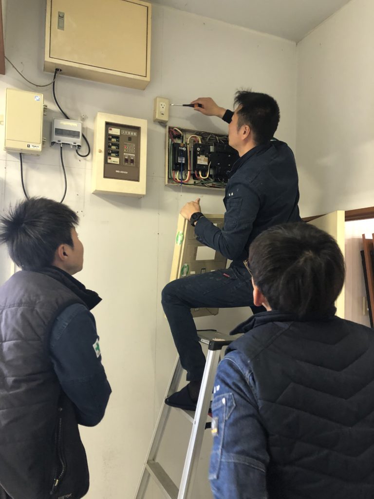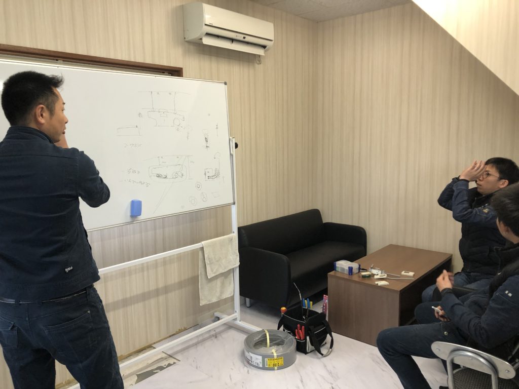 本日は、砺波事務所・資材置き場で空調工事・電気工事についての講習です!