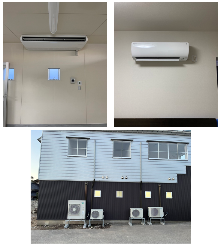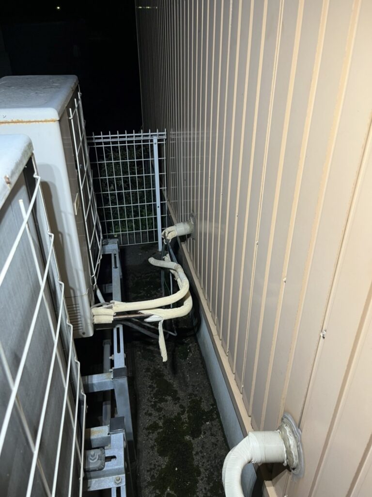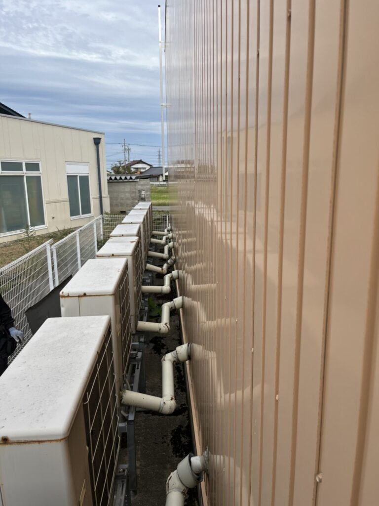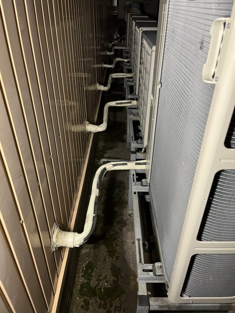 一部のエアコンは新品に交換しましたが、残りのエアコンは外部配管のみ補修し、