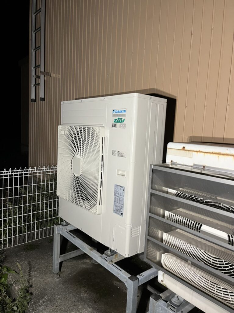 今回は業務用エアコン更新工事及び、既設外部配管補修ラッキング施工です。