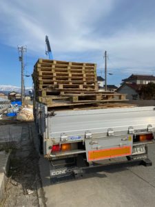 太陽光パネル工事も無事終わり、最後に廃材のパレット運搬作業を行いました。