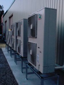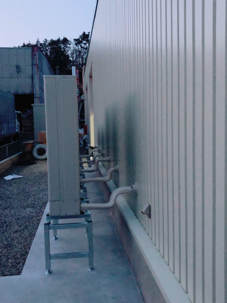 本日のパッケージエアコン工事は、室外機仕上げ作業です。